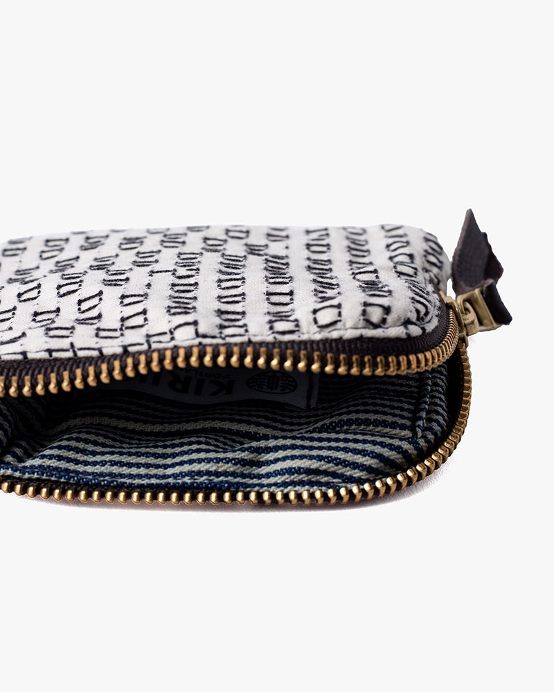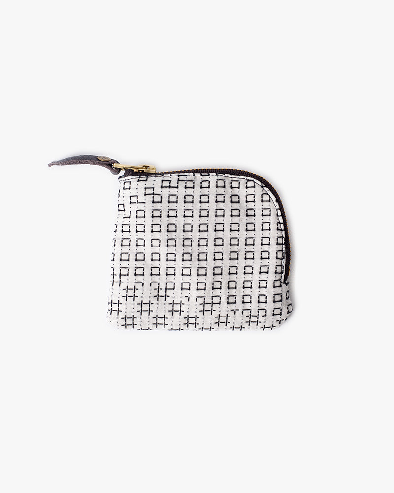 Kiriko Original Zipper Wallet, White Sashiko