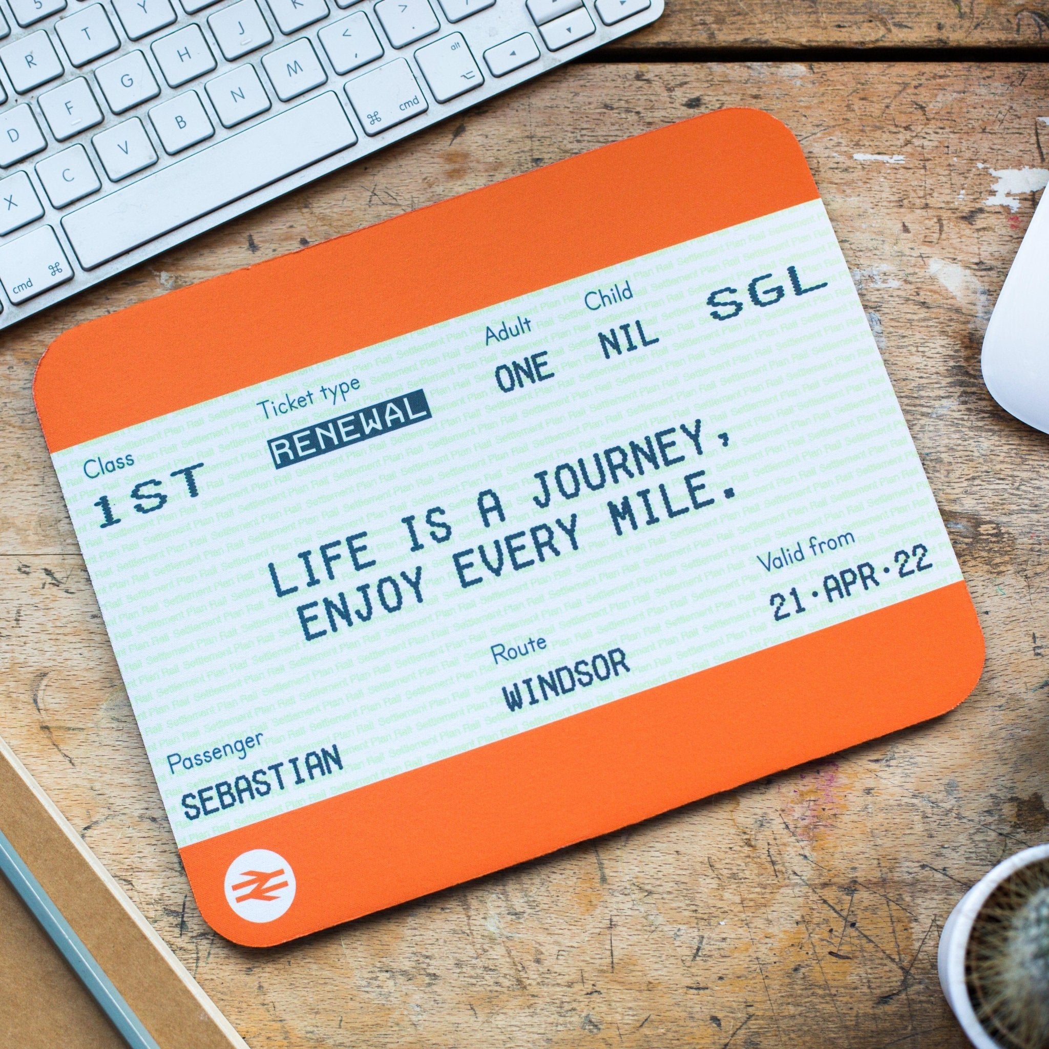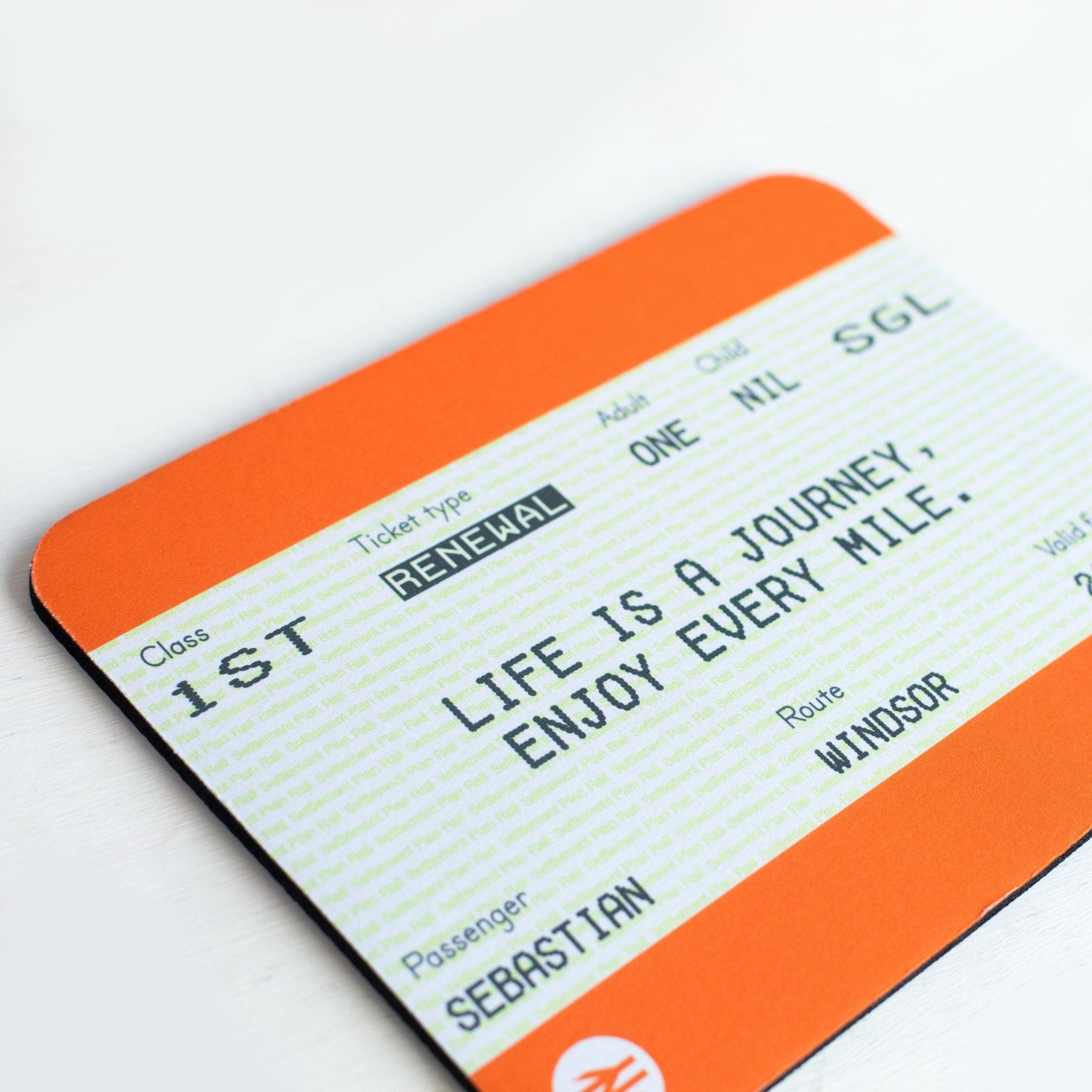 Personalised Train Ticket Mouse Mat Birthday Gift