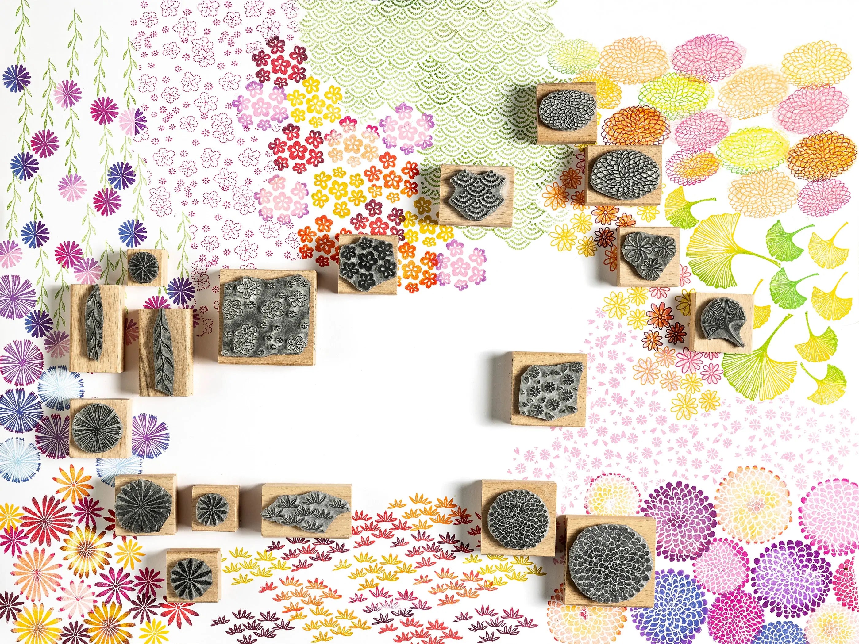 Japanese Flowers and Pattern Rubber Stamps for Card Making and Creative Projects