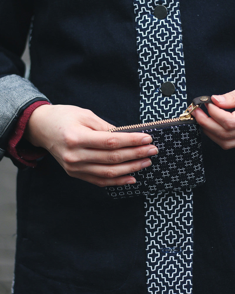Kiriko Original Zipper Wallet, Indigo Sashiko