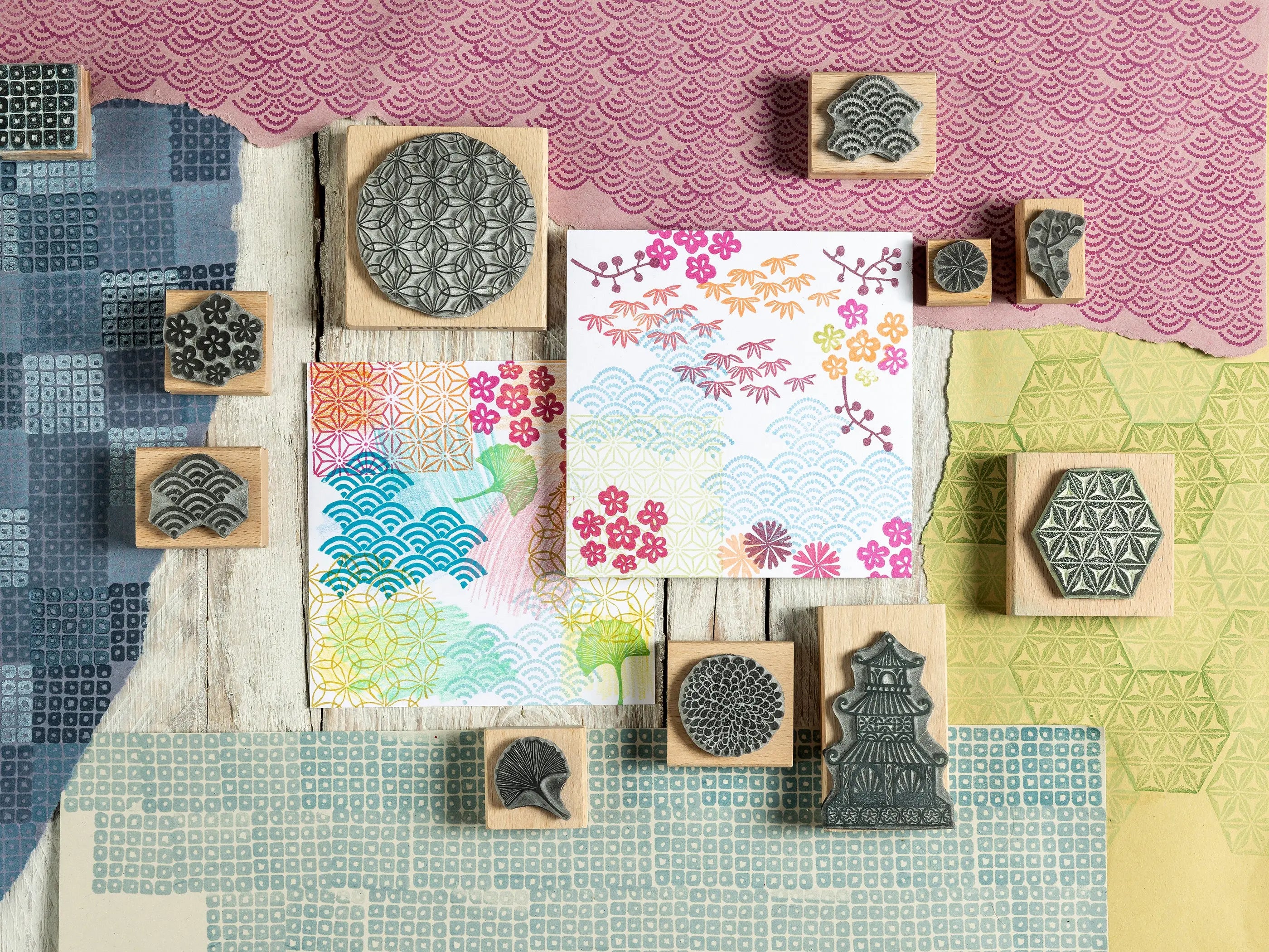 Japanese Pattern Rubber Stamps, Geometric patterns and Flower of Life Stamp Designs