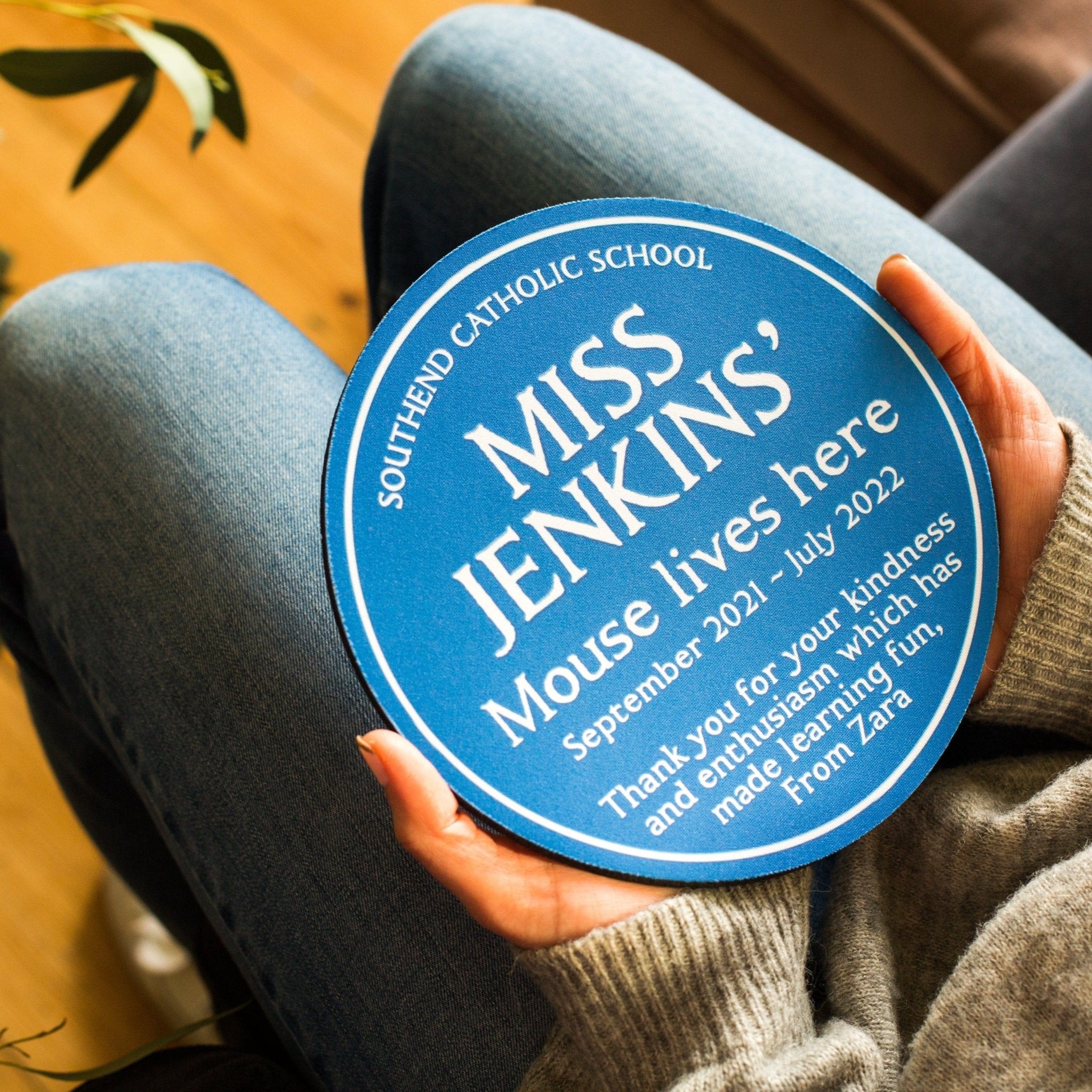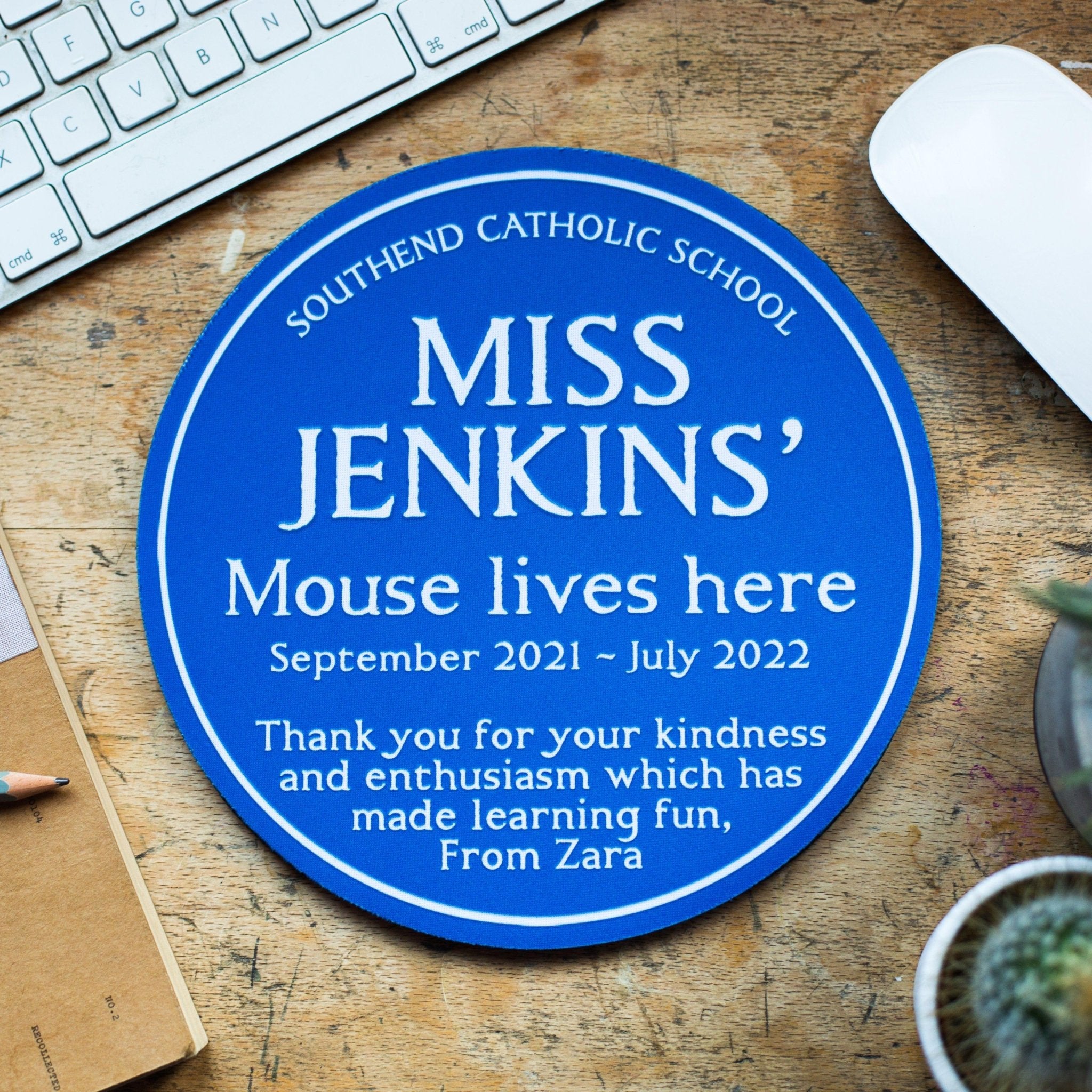Personalised Blue Plaque Mouse Mat for a Teacher