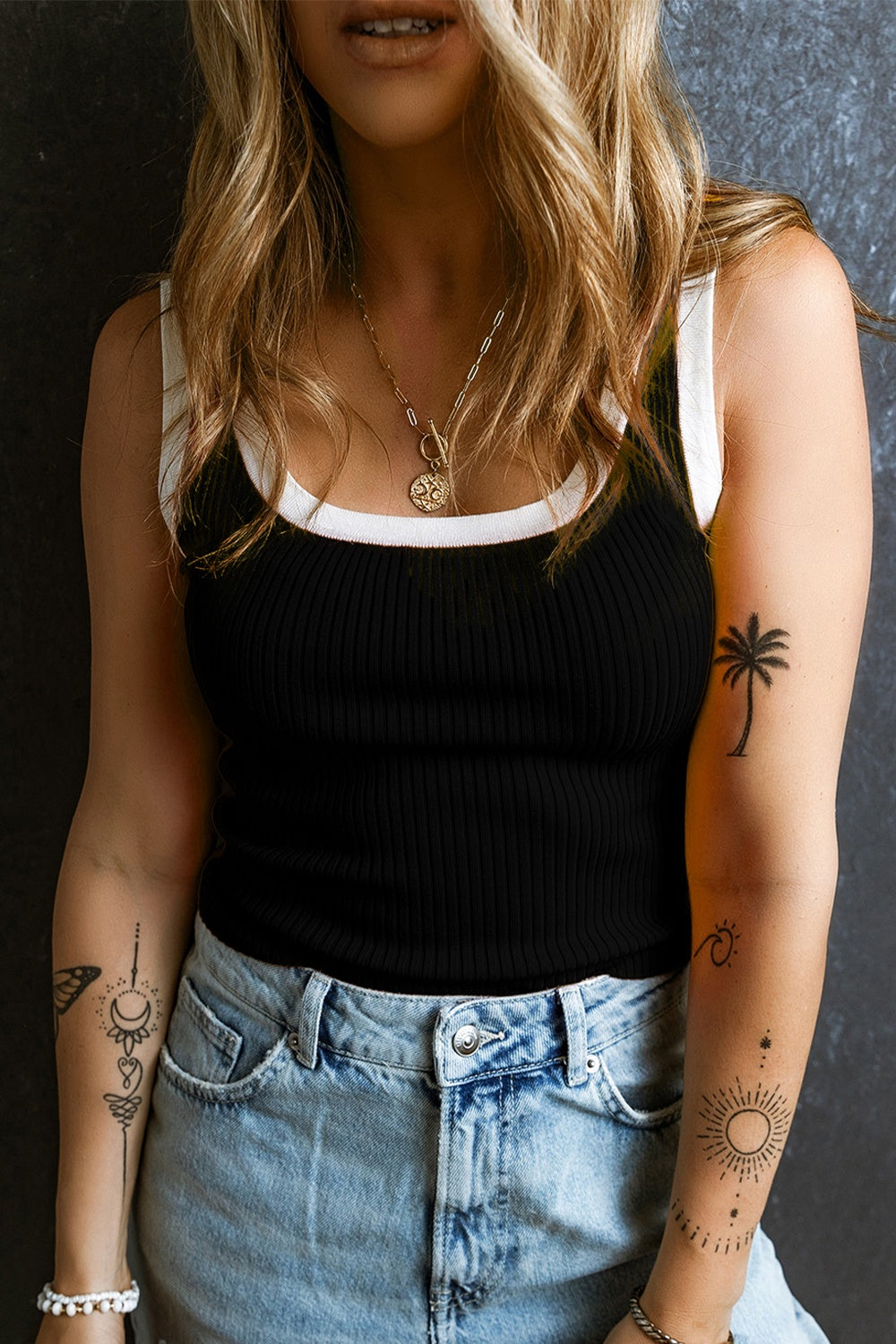 Contrast Trim Ribbed Knit Vest