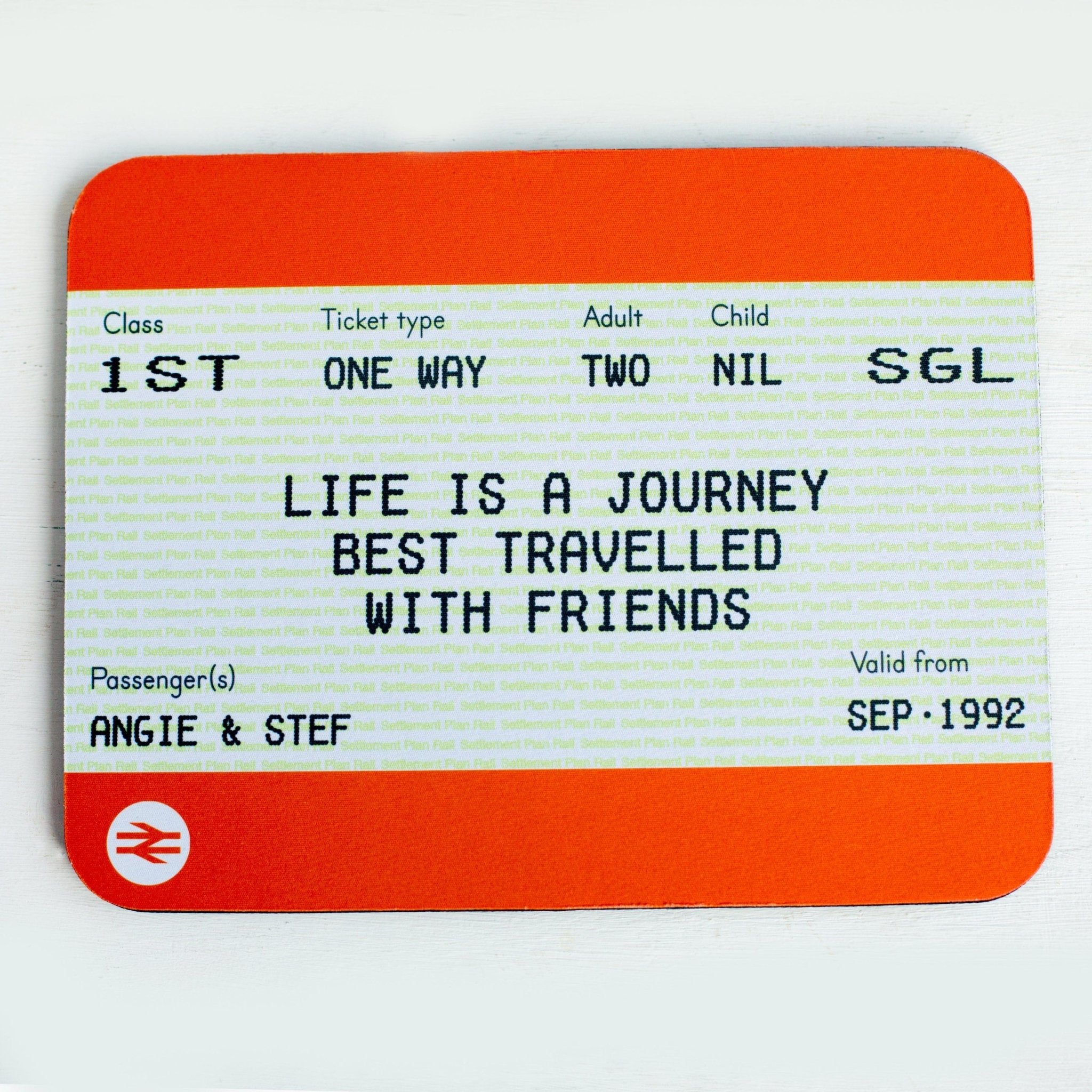 With more and more people working from home these days, there are an awful lot of home offices that need brightening up. This brilliant new personalised train ticket mouse mat is an ideal friendship gift that doubles up as a useful computer accessory. We have taken the ticket and added a quote that describes the important role our mates play in our lives.